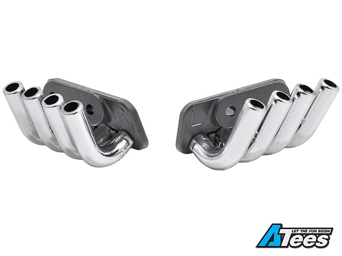 Tech Notes: RPM Zoomies Exhaust Headers are non-functional and cannot be used as a real exhaust system. There must be at least 7/16” (11mm) of clearance behind the body for this system to install properly without interference with the chassis.