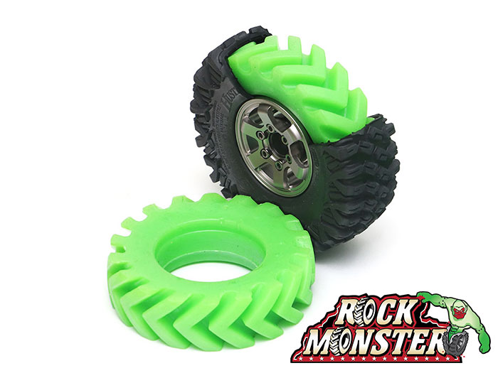 The original Rock Monster was designed and developed in Arizona, USA by entrepreneur Michael Giles. In the early days, silicone inserts were made to order and customized to each tire's specification. The idea behind a silicone insert is that foam inserts couldn't hold the weight of increasingly heavier crawler rigs with smaller tires. At the same time, folks started to experiment with hard bodies/small tires to build better-looking scale rigs. Figuring out how to hold the weight of a heavy rig without deforming the tires was a mystery back then.