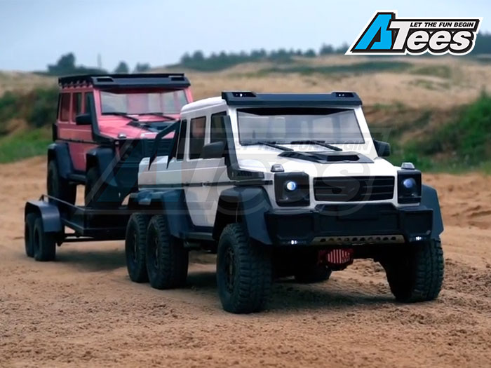 This G63 6x6 crawler is built on top of the Traction Hobby 1/8 Brabus G550 4x4 Crawler. The conversion kit transforms the original 4x4 crawler into one of the most badass ultimate 6x6 beast.