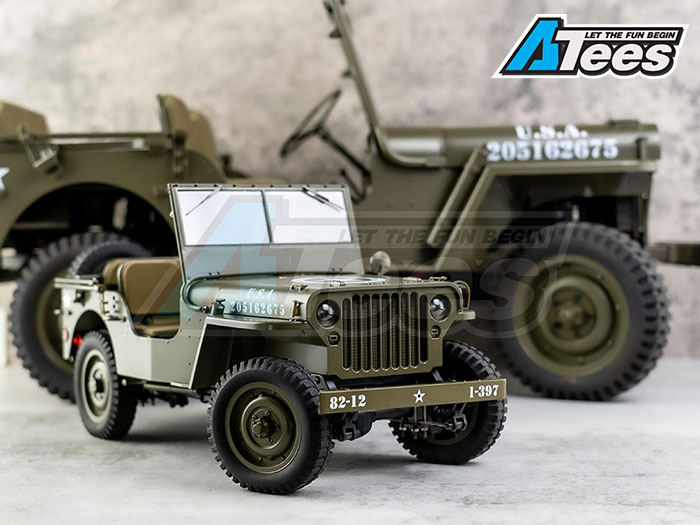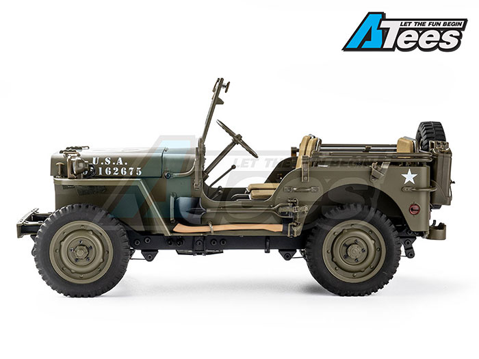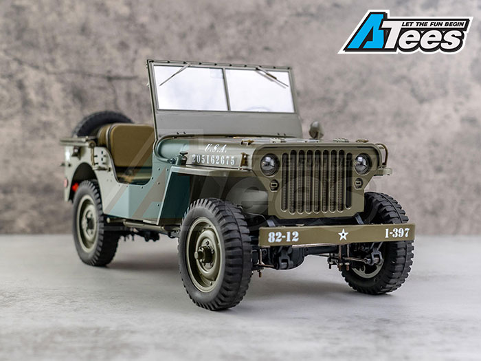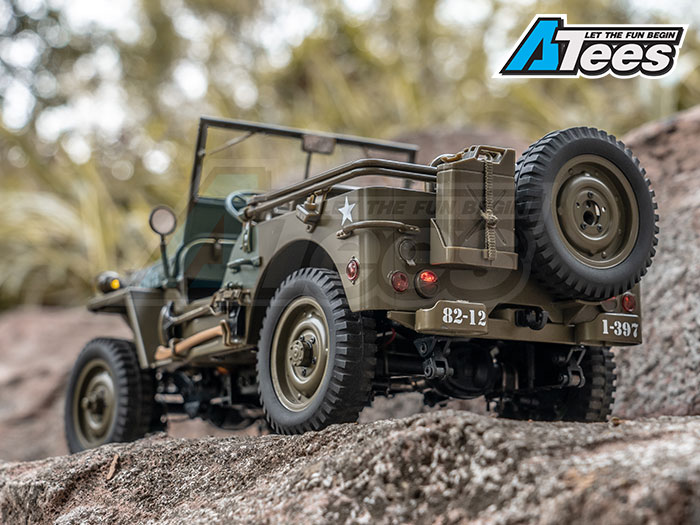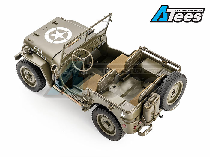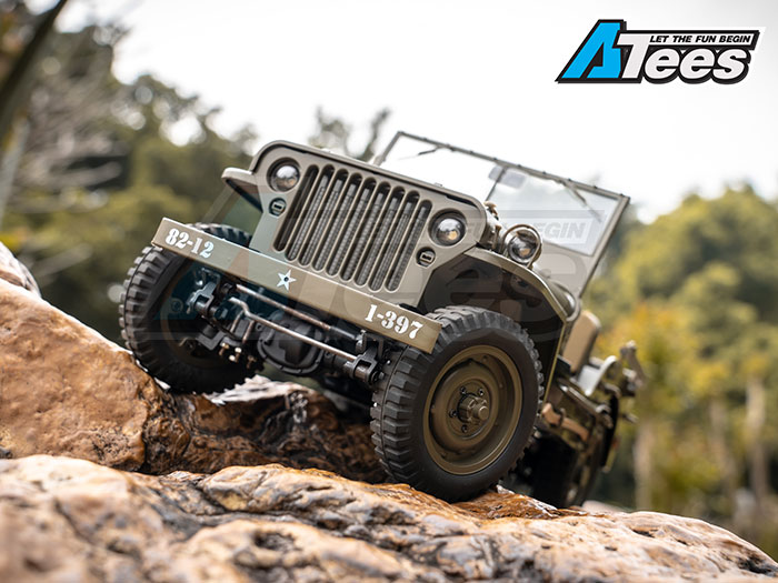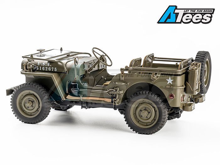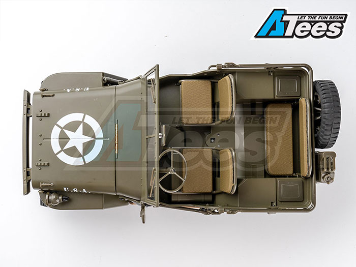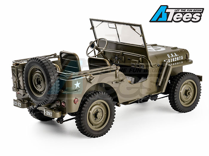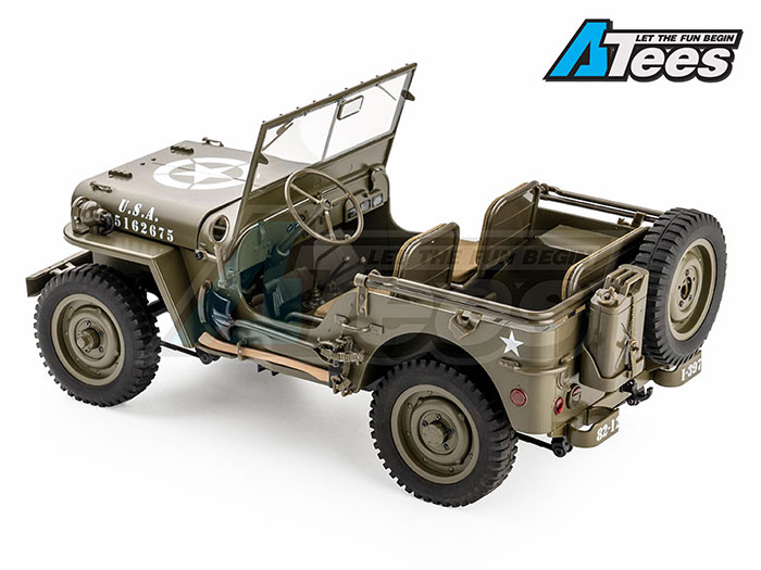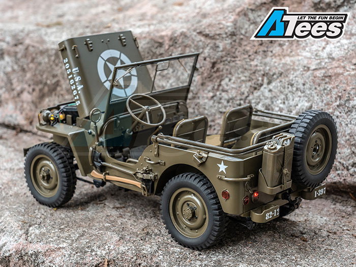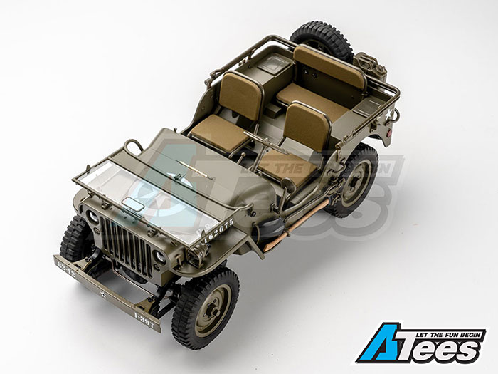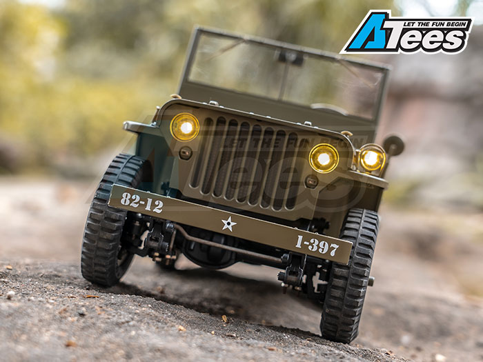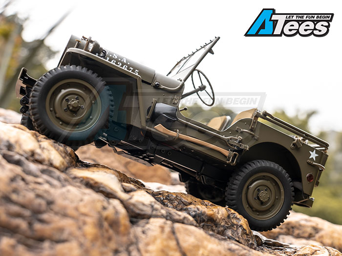 However, the 1:12 1941 Willys MB features even more. More Details — such as lifelike canvas seats, a fold-down rear seat with openable bins, and tires with stunning scale tread patterns. More Realistic — the Willys MB chassis features a solid ladder frame rail that mirrors its full-size counterpart, multi-leaf springs with dampers as well as offset differentials, making this vehicle exquisitely equal to the legendary historical Willys. More Versatile — the Willys MB features a fantastic LED system (four turn lights, two headlights, and a blackout lamp) that helps explore the dark of night.