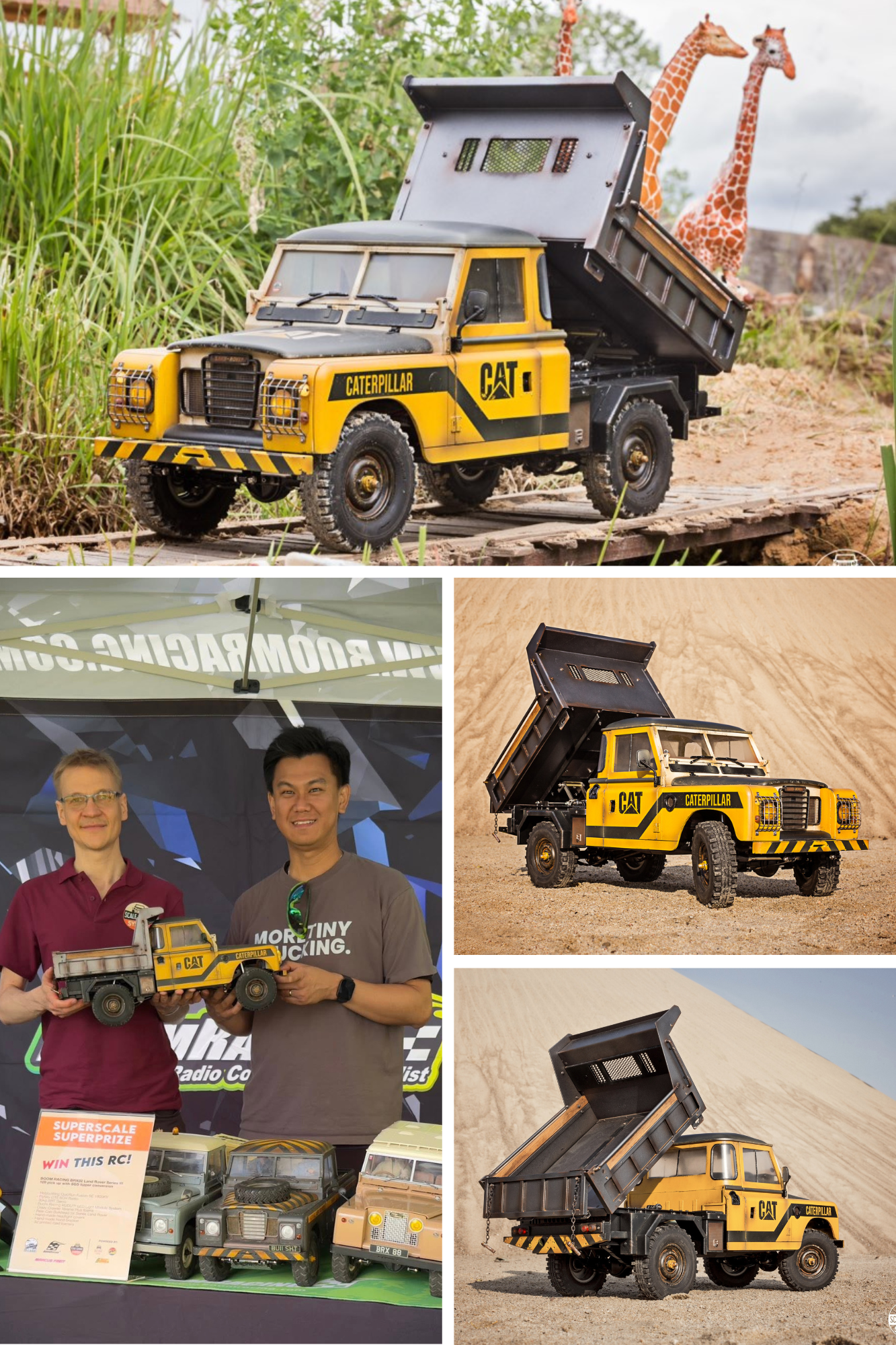 CAT DUMP TRUCK Boom Racing BRX02 Land Rover Series III 109 - it included a dump bed that really works! I consider it to be the absolutely most advanced build that I created (with my father). It was the main prize for superScale 2025. I met Jason at this event, and we gave this prize to a tombola winner! It was made by Scale Garage System in cooperation with Boom Racing (who delivered the kit and add-ons), Markus (superScale), Quentin Farcy, Dariusz Cybula and Crazy Crawler. It was also featured in the Best Builds of Scale Builder's Guild forum 2025.
