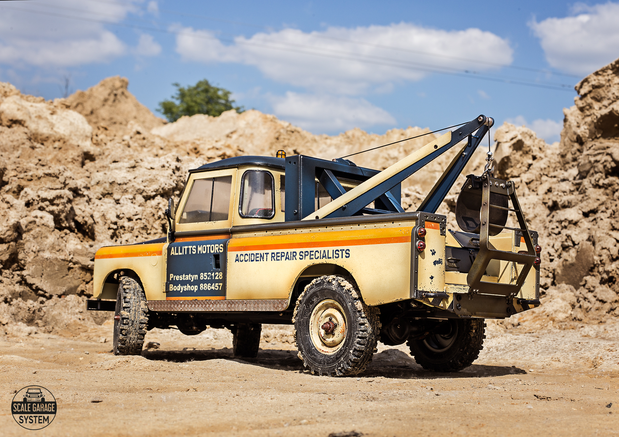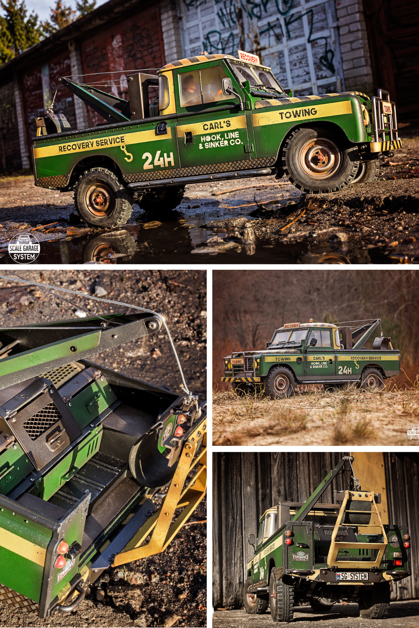 TOWING TRUCK Boom Racing BRX02 Land Rover Series III 109 - another 109... So far, I created two towing trucks and the white one is owned by my friend Vincent Peters. The green one was featured in the Best Builds of Scale Builder's Guild forum 2024. It really works, and I like the unique paint job scheme that is my fantasy (I rarely make replicas). I also definitely have to highlight the Safari Boom Racing BRX02 Land Rover Series III 88, which is now available for sale as part of the new Boom Racing initiative!