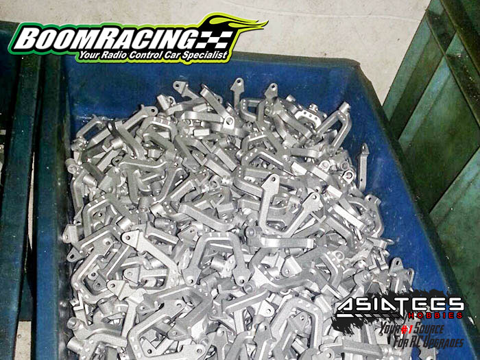 When we took the part out of the CNC machine, usually it has a lampstand under it. We use another machine to cut it off and then it has the exact shape we need now. The last step before we can put it on our cars is anodizing. No part is shinny metallic color before this step. It also adds a protective anodic films to prevent wearing out easily. When this step finished, it's time to try them out and see how strong and flexible they are when compared with the plastic parts.