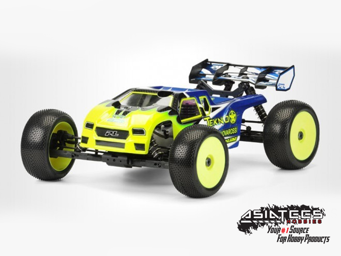 This new truggy bodyshell, nicknamed the Enforcer, is made for Tekno's NT48 truggy. Inspired by the success of the Type-R Buggy body, the Enforcer has a heavier angular front end look and a swooping roof. It also has bed sections to improve airflow and high-speed stability. The hood of the body is also steeper to create more downforce over the front wheels, which will allow better steering and better lap times. This clear body is just released!