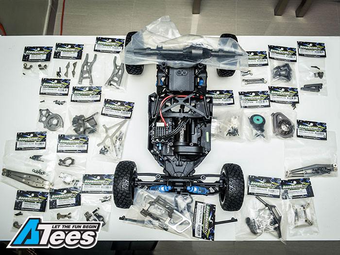 As the SCORE trophy truck is built around the 1/10 Yeti platform, a lot of parts we have in stock are already cross-compatible with this baby. So stay tuned; we're going to be pimping this sweet ride with a load of gunmetal Boom Racing stuff.