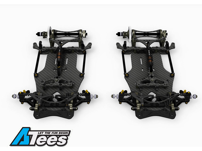 The rear features a new vertical micro damper layout for improved handling and tuneability. The kit is rounded out by a graphite rear axle with alloy wheel hubs and a thrust-raced ball differential.