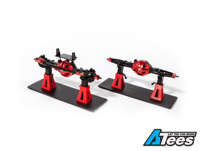 ATees was my best friend here as they sell the CNC-machined Boom Racing BR233024 axles. A full aluminum axle that weighs a stunning 287 grams or 10.13 ounces, lowering your COG (Center-of-gravity) by quite a bit! It comes with some details highlighted (diff cover, steering link rod ends, etc) in a certain color. The axles are available in red, blue and black. It was my luck that with red as a theme color for the build, the red also was the most affordable.