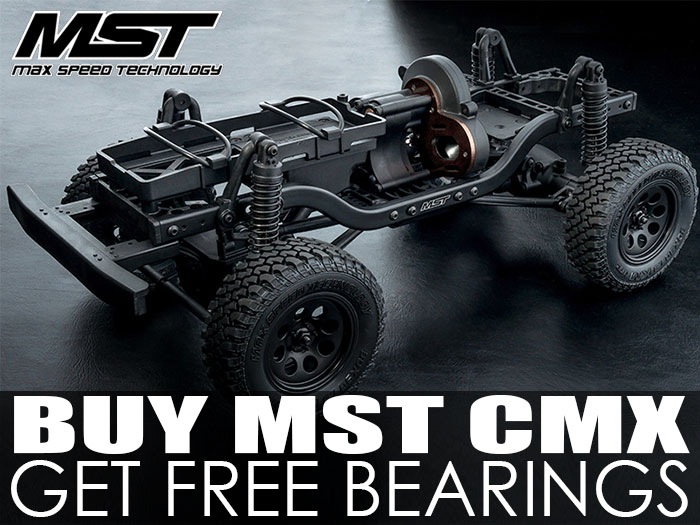 From now till February 28, order the MST CMX 1/10 crawler kit, and get a Boom Racing full bearing upgrade set #CFXBBZ.