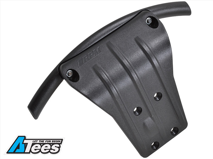 This RPM bumper and skid plate is structurally engineered to add impact-absorption to dramatically reduce the impact force being transferred to the chassis from any front impacts and crashes. The bumper comes in two pieces. The first piece is the skid plate that is 4mm thick solid plastic and it incorporates a 1.5mm thick skid ribs. The second piece is the very wide curved oval bumper that is attached with two screws and bolts to give the body some extra protection. It is a straight forward replacement, just unscrew the four screws that hold the original bumper on and screw the RPM bumper into the same holes using the screws provided.