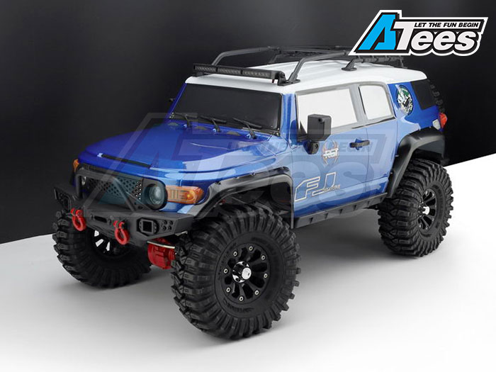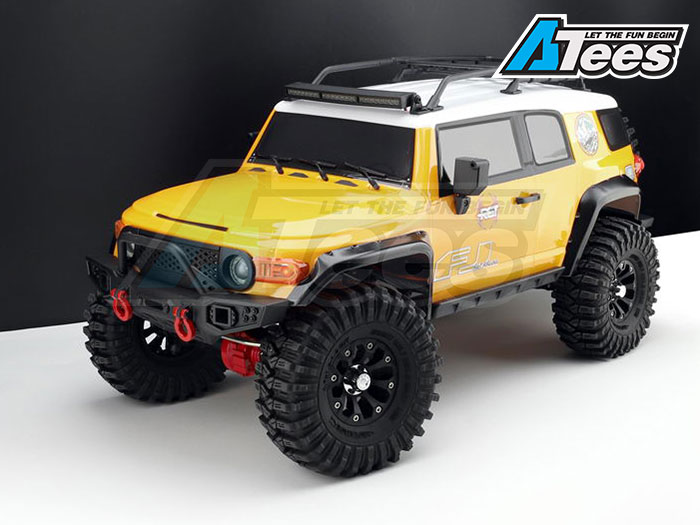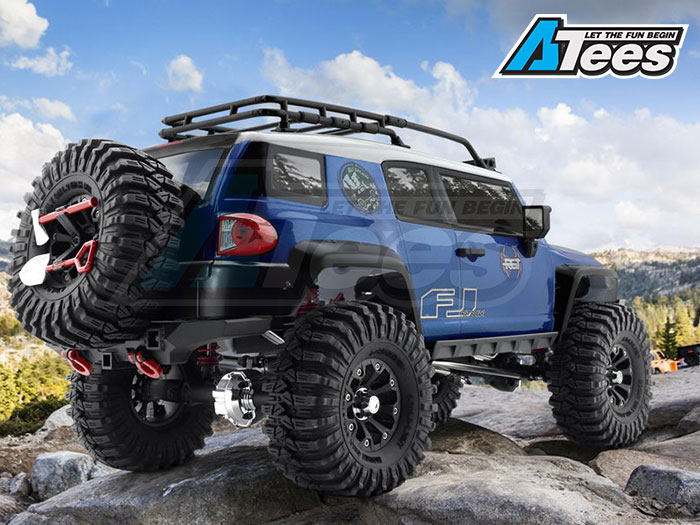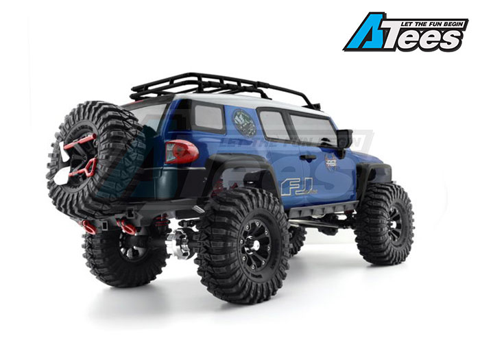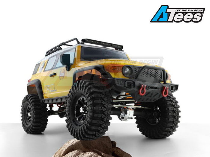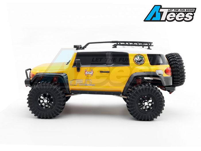 The Desert Fox follows the FJ Cruiser classic style. The bodyshell uses environment-friendly paint in PC softshell material, and has three colors as an option (gray, blue and orange). The body has many accessories - spare tire, roof rack, rack lamp, sidesteps, front grill, LED cornering lamp, headlight with angel eyes, rear-view mirrors, wipers, handles, ax and shovel. It also has simulated front and rear bumpers and stealth hidden front body posts, making the overall appearance superb!