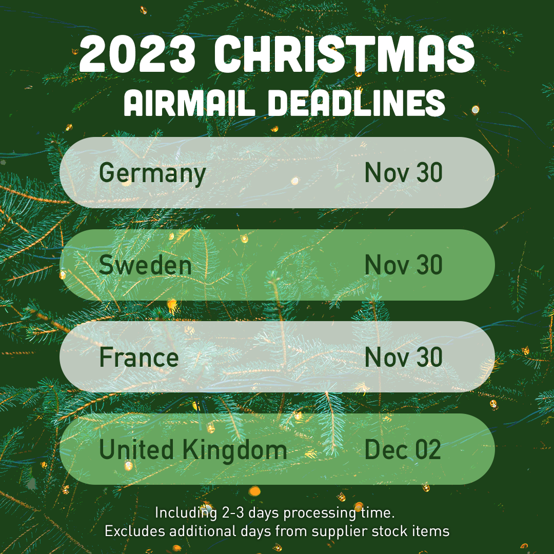 Are you planning to gift some RC fun this Christmas? If yes, then it's important to plan ahead and take note of the Airmail shipping cut-off dates. Please keep in mind that these dates include 2-3 processing time, but do not account for any extra time needed for supplier stock to ship. Customs clearance time is not included. Make sure to check the dates above carefully to ensure your gifts arrive on time.