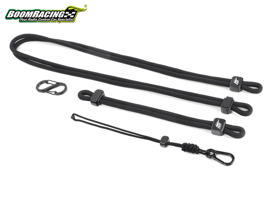 Introducing Boom Racing’s new “Remote Strap Set,” designed specifically for all you R/C fans out there. This box set includes three straps: one long, one for the neck (up to 80cm), one short for the wrist (up to 18cm), and one remote strap (up to 15cm) with quick-release hooks. The straps are fully adjustable in length using aluminum knobs and are suitable for most surface or air R/C transmitters. These straps offer both comfort and style and are a versatile way of ensuring your valuable TX is safe in use.