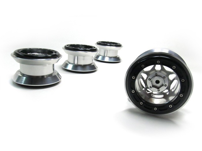 Rock crawling and bashing with the Axial Wraith both put a lot of stress on the stock plastic wheels. The more weight you put on the car, the worse it will perform with the plastic wheels. Upgrading it to aluminum wheels would not only give a better strength to support your truck, as well as having a much stronger hex area to keep you from spinning the wheels due to excessive torque. It is also beneficial to get the beadlock design. Having beadlock would allow you to change tires without using glue and securely hold the beads of the tires with screws.
