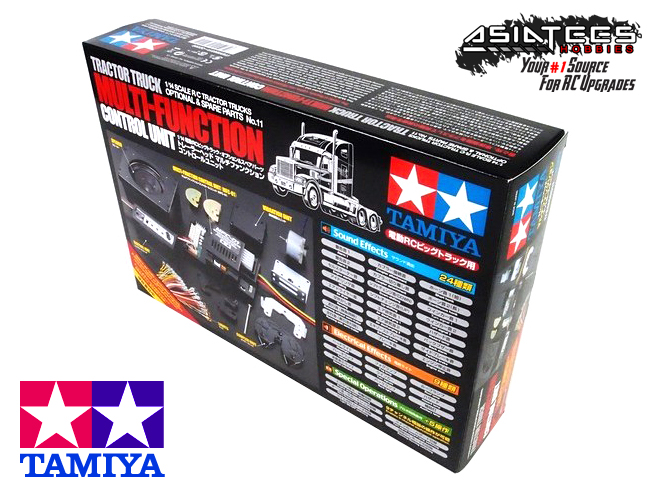Tamiya presents incredible sound and action options for any 1/14 scale R/C Tractor Truck with the all R/C Tractor Truck Multi-Function Control Unit. This system, when mounted on the truck is located inside the cabin with speaker to the front and the MFC-01 unit to the rear. The control unit is mounted inside the left tool box for easy access. Check out the video below for a demonstration on how it sounds.