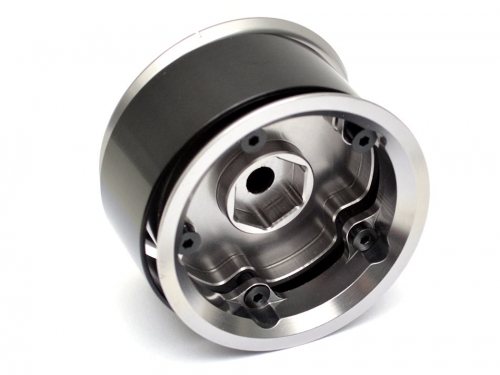 1.55 Yota LC70 Stock Steelie Beadlock Wheels Rear (2) Gun Metal by Boom Racing