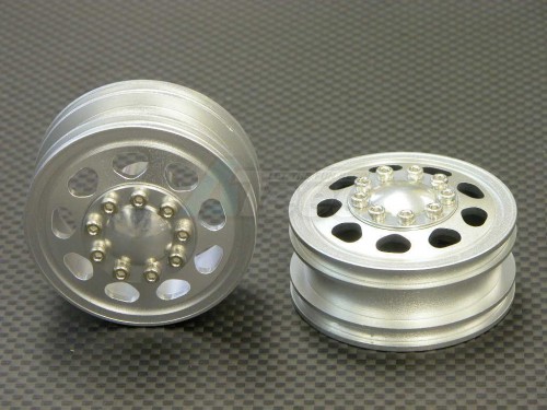 GPM Racing Aluminum Front Wheel (9holes) - 1 Pair Silver for Tamiya 1/14 Truck (1850L)