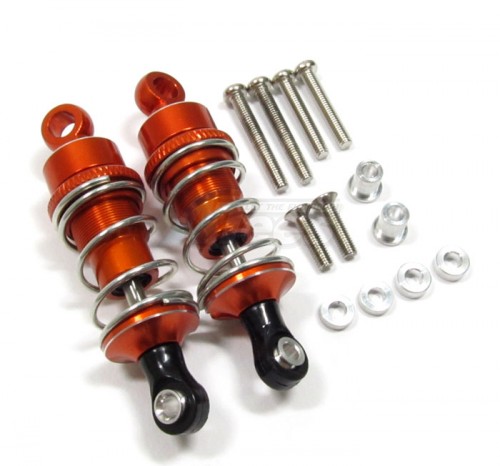 Aluminum Ball Top Damper (55mm) With 1.5mm Coil Spring & Aluminum Collars & Washers & Screws - 1pr Set Orange