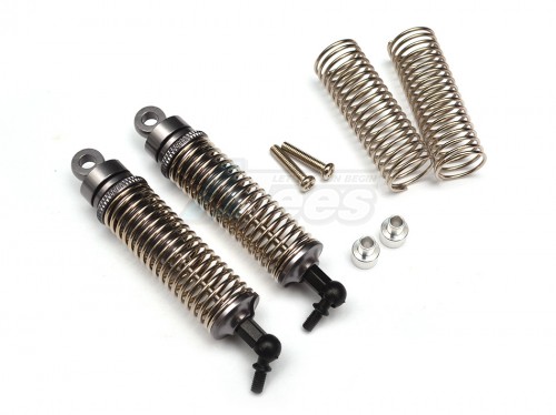 Aluminum Rear Adjustable Spring Dampers (57mm) With 1.0mm Springs & 0.9mm Spare Springs & Aluminum Collars & Screws - 1pr Set Gun Metal