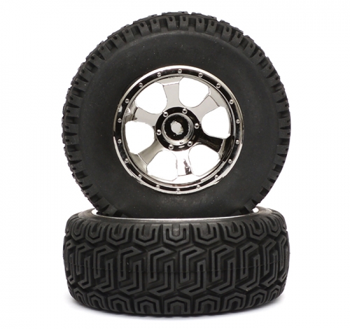 1/10 Short Course 6-spoke Wheel +Tire Set(1 pair) 6 Spoke Silver by Boom Racing