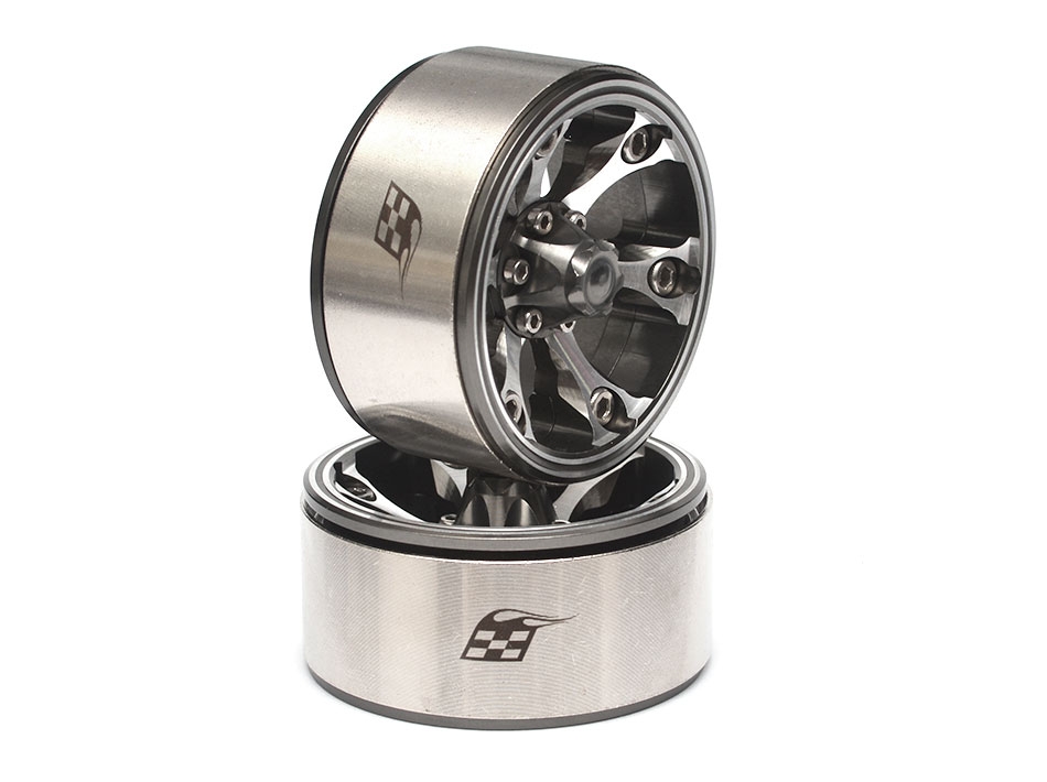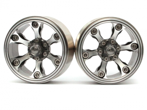Packing 115g of extra weight per wheel, these monster wheels are compatible with a wide range of 1/10 crawlers, such as the Axial SCX10, Wraith, or TF2. CNC-machined from aluminum. Available in a range of styles. Anodized finish available in metallic green, black, silver or gunmetal colors. - Color: Gun Metal
