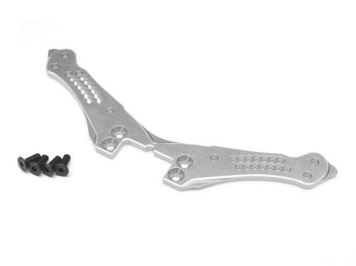 Replacement for the stock FRP part and compatible with both AWD and RWD versions of the Sakura D4. Available in signature Sakura anodized pink, gun metal, or silver. Includes 4 mounting screws.