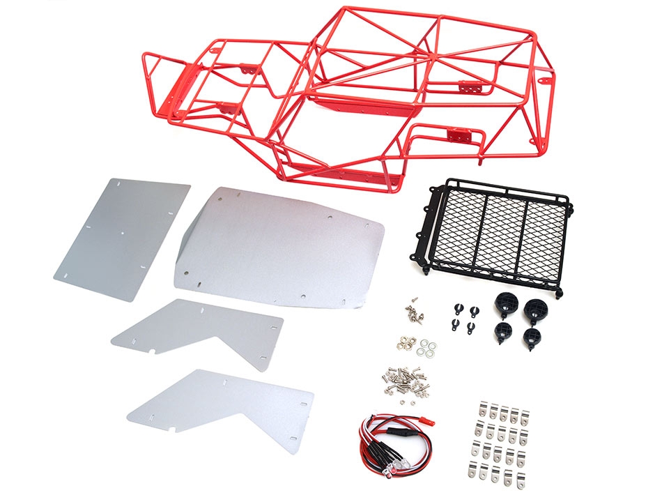 Heavy Duty Steel Outer Cage For Wraith With Roof Rack, Metal Plates & LED Set Red