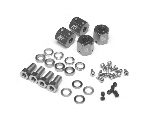 - These KRAIT™ Aluminum Wheel Wideners can fit almost any 1/10 12mm hex RC cars give you an addtional 8mm stance. Total length is 12mm (4mm sits inside the wheel hub).