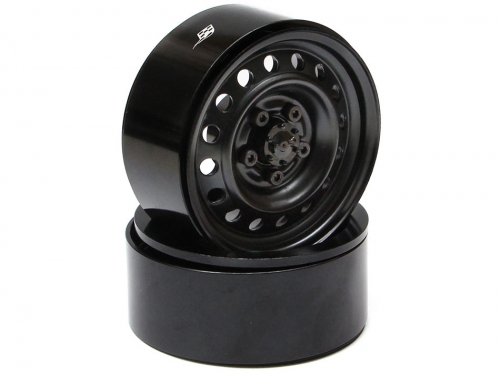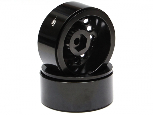1.9 Badass Classic 16-Hole Steelie & CNC Aluminum Beadlock Wheels W/ Center Hubs (Rear) 2pcs Black by Boom Racing