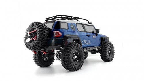 Desert Fox follows the FJ Cruiser classic style. The bodyshell uses the environmental protection paint PC softshell and has three colors for option (gray, blue, and yellow). The body accessories have the spare tire, roof rack, rack lamp, foot pedal, grill, LED cornering lamp, headlight with the angle eye function, rear-view mirror, wiper, handle, ax and shovel, etc. Also, the simulated front and rear bumpers, and the hidden front body post, make the overall car more beautiful!