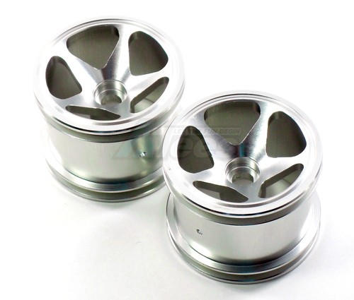The Team Losi Mini-T Aluminum Rear 3D Dent Surface Wheels 6 Spokes Rear Pair Silver has an average rating of