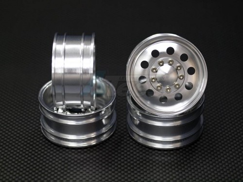 - 4 pcs of T-6 6061 1/10 scale wheels. 26mm width. Fits standard 12mm hex. 9 bolts secure the outer plate to prevent dirt.