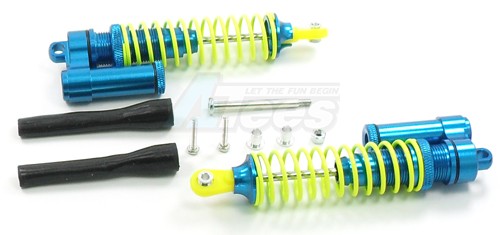 The Team Associated Monster GT Aluminum Big Bore Piggyback PRO Adjustable Front / Rear Shocks 100mm (L-shape A) Downward 1 Pair Blue (Yellow Springs, Yellow Ends) has an average rating of