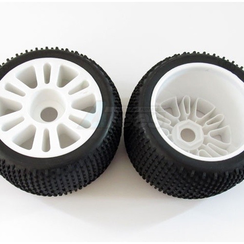 Nylon Wheel (6 Spokes) With Rubber Radial Tire (Small Dot) 0mm Offset (Big Size) - 1 Pair White by GPM Racing