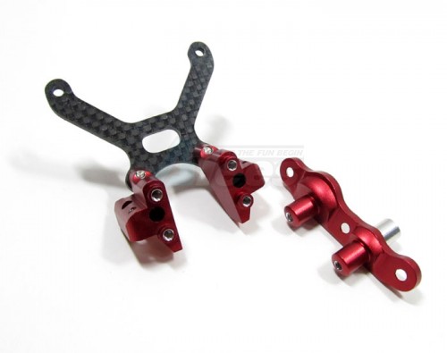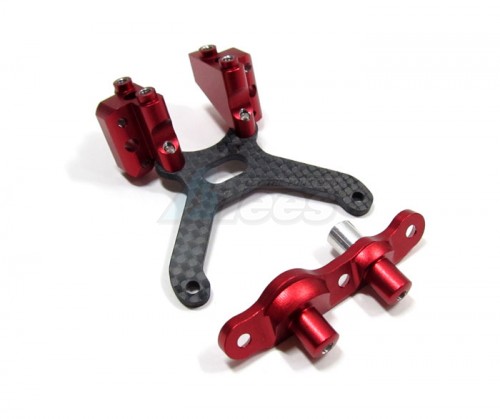 Graphite Plate + Aluminum Mount Con. F/ Front Damper Plate + Steering Cap Red