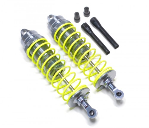 Aluminum Front/Rear Adjustable Dampers With Dust-Proof Black Plastic Cover & Delrin Collars- 1Pair Set Gun Metal