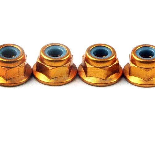 - Factory description: Kyosho Nut(M4X4.5)Flanged Nylon(Alum/Gold)
