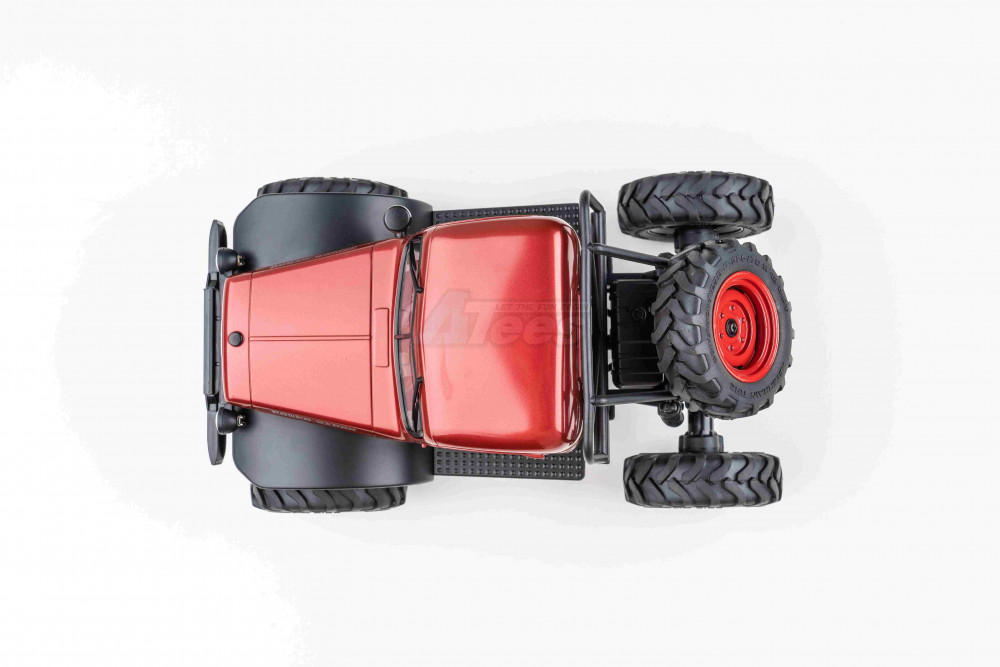 • FCX24 is positioned as a high-performance crawler chassis. The car frame is made of high-strength nylon. Compared with the trapezoidal beam spliced by metal side beams and plastic trusses, the overall weight is lighter and the strength is higher. The mid-mounted power assembly has a low center of gravity and integrates the 2-speed transmission, transfer case, and a 130 motor. The power is transmitted to the front and rear axles through the universal joint drive shaft. The axles are equipped with wheel side reducers, commonly known as "portal axle", which can increase the ground clearance of the differential tooth pack and improve the passability.