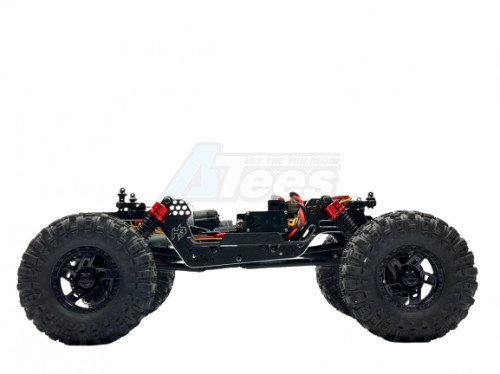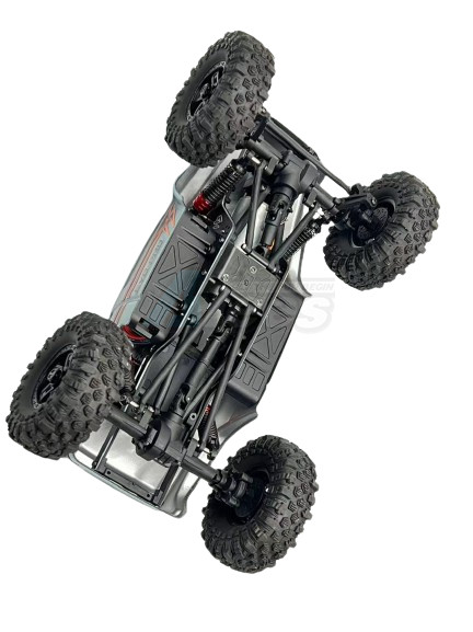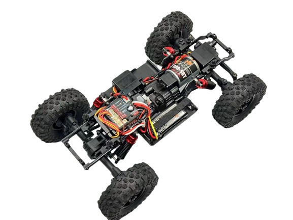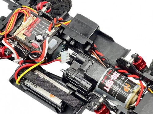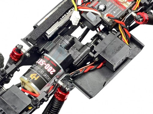 A New servo on axle (SOA) setup has been designed for sharper steering matching with the new specially formulated sticky oversize tires will give users maximum traction on all terrain. The layout of the chassis has also been redesigned for better weight bias and a new more powerful 280-size big block motor has also been included to make sure users get the best crawling experience. With the new powerful motor, we have also redesigned the new heavy-duty drive shaft for the new EVO-PRO.