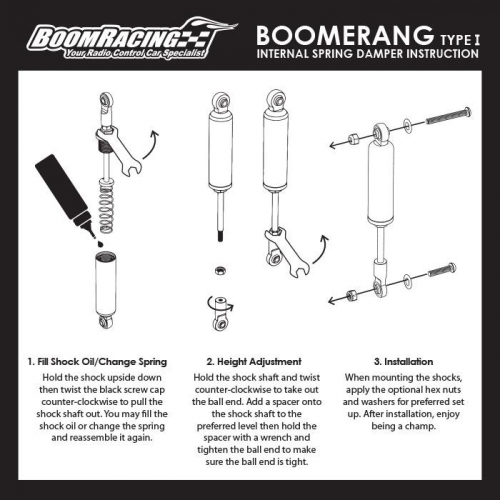 - Factory description: Boom Racing Boomerang Type I Aluminum Internal Shocks Set 90MM (2)