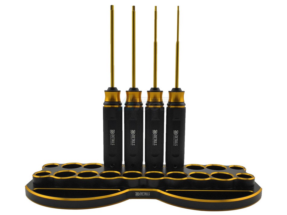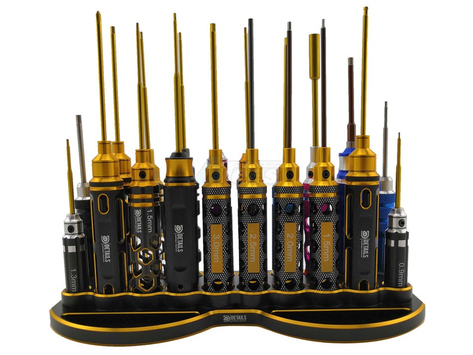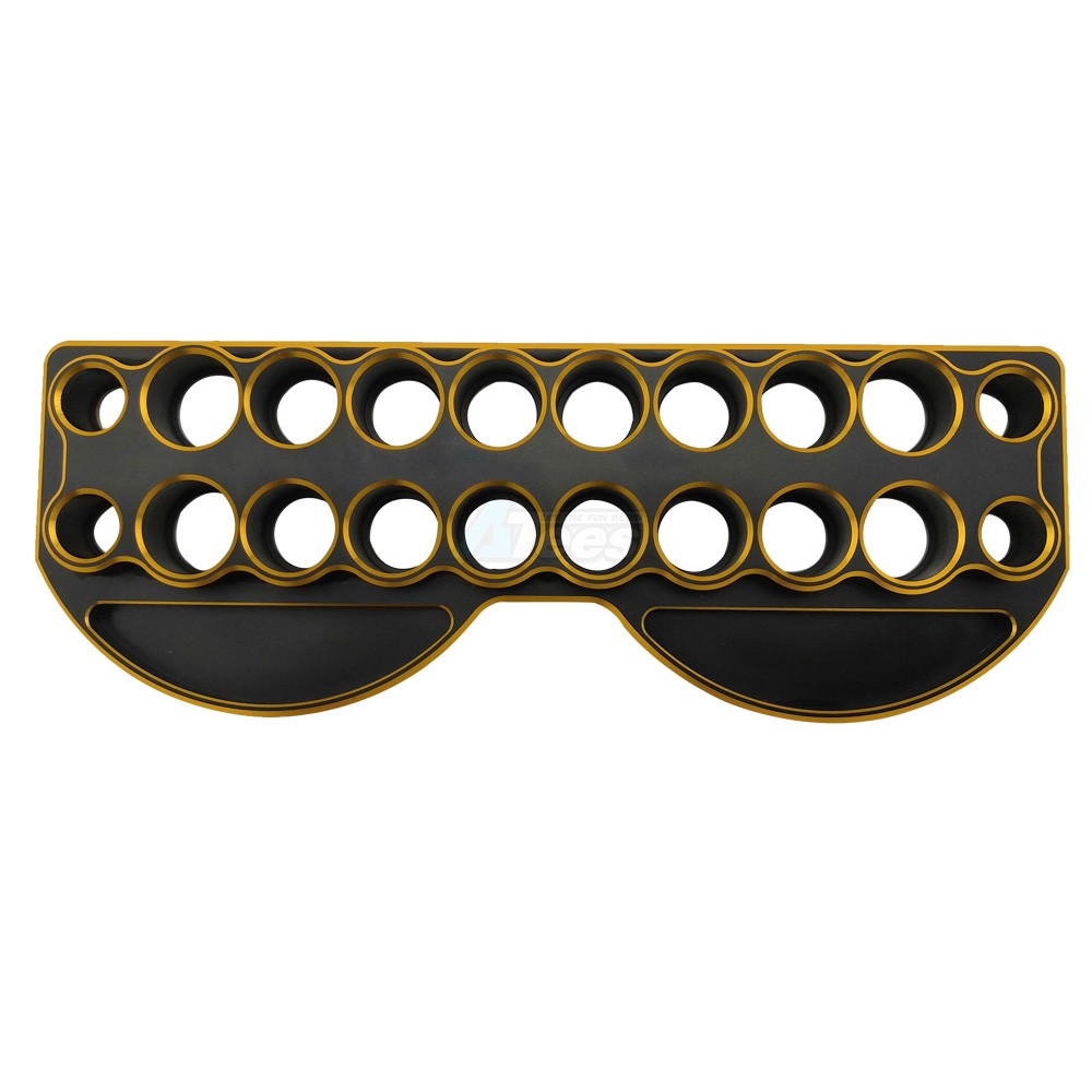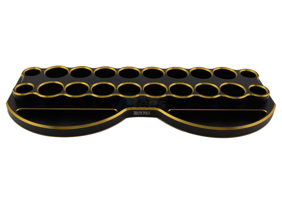 - Factory description: Hobby Details Aluminium RC Tool Stand Black Gold 230x84x20mm 20 Holes: 4*14mm / 12*19mm / 4*20mm