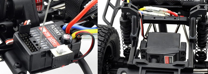 Besides, the battery tray mounted in front will prevent V3 from rollover when climbing. RC 4 V3 uses a custom-made and multi-functional electronic part, which gets the ESC, LED light control, and receive function together and jointly developed by Fly Sky and Hobby Wing for RC4 V3.