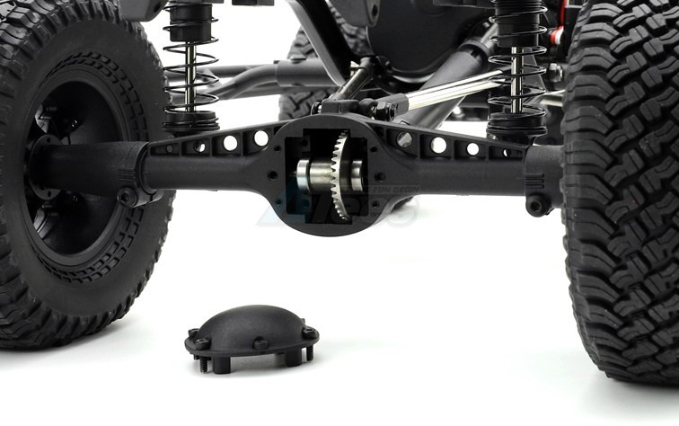 - All ball bearing, New One-piece molded axle housing, the metal spool gear, and removable gear cover could be installed for option, more realistic.