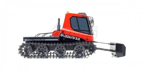 This is Kyosho 1/12 Blizzard 2.0 All Terrain Belt Vehicle w/ Syncro KT-431S 2.4GHz Readyset RTR EP. Powered by two independent side-by-side motors, the transmission in the Blizzard 2.0 Readyset delivers awesome power and free control so you can enjoy dominance over any terrain like only a true belted vehicle can deliver. With a suspension system equipped on all wheels, the Blizzard clears every challenge in its path including rocky obstacles, steep hill climbs and gravel or sand that would trap a machine with normal tires. Twin 370 motors and twin ESCs deliver forward, reverse, left/right turning and pivot (turns on the spot). In addition, control of the blade arm with the transmitter adds another fascinating aspect to the Blizzard. For great fun in the sand or snow, the Blizzard can match your outdoor lifestyle and go wherever you want to go.