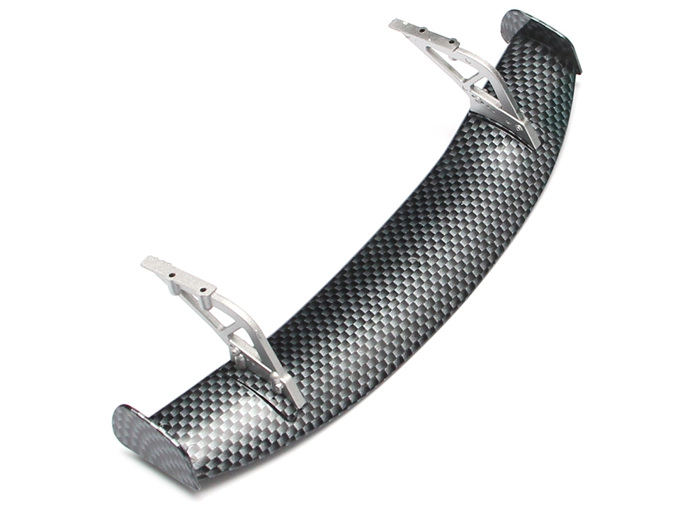 - Factory description: Boom Racing Shiny Carbon Fiber Wing (Rear Spoiler) W/stands For 1/10 (#00496)