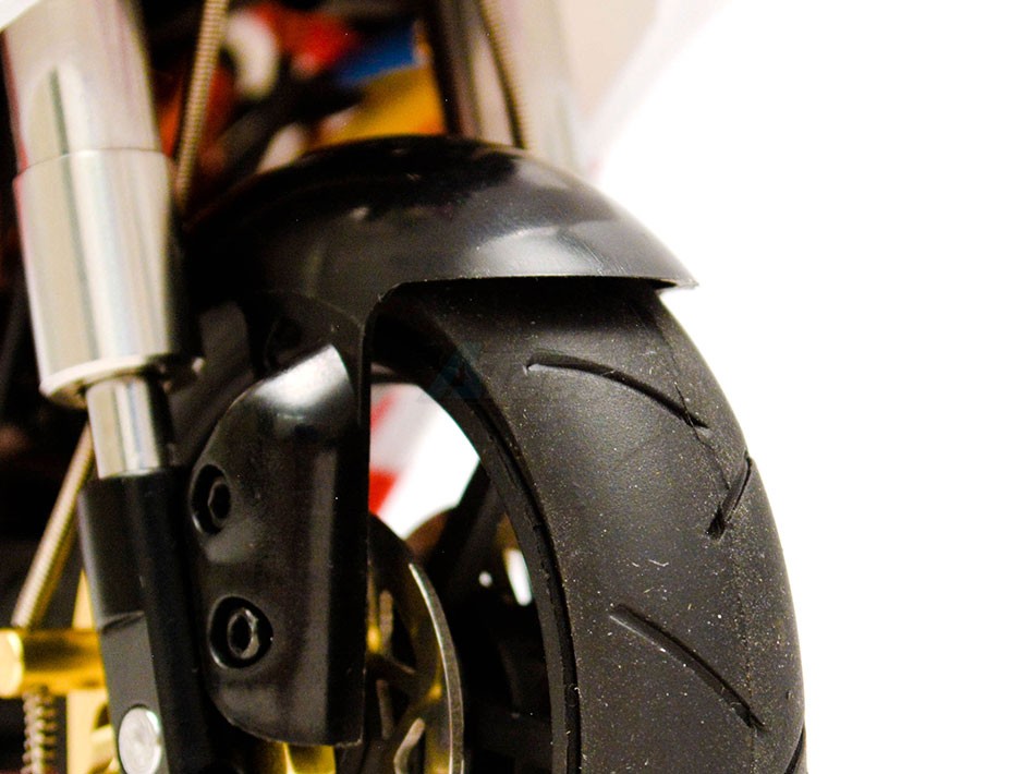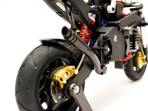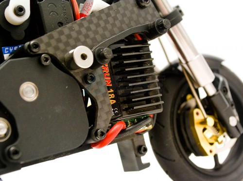 This is a good fun bike. Very easy to ride but needs considerable skill to ride without crash bars. Needs some fine tuning out of the box (steering and disc calipers). Not entirely sure if it needs rear brakes as the ESC can perform this as well. With its current retail price, maybe it would be better if it came with alloy wheels, alloy swing arm, alloy clamps and gear covers. You can explore 'floating-steering' mechanism for better control if riding without crash bars. Also can adopt a shock aborber at the steering pivot for better handling and turning.