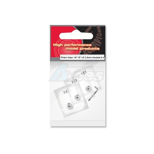 - Factory description: Scorpion Scorpion 2.5mm MOD 0.4 Pinion Gear Set
