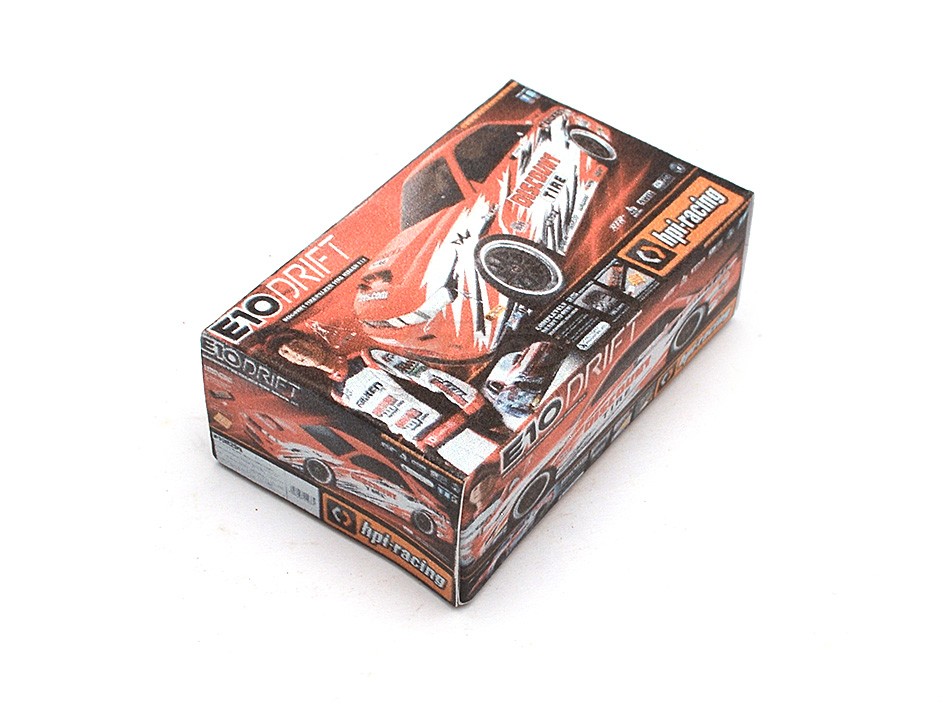 17mm x 50mm x 30mm 1/10 miniature cardboard R/C HPI drift box. E10 drift details.