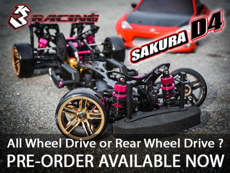 - Factory description: 3Racing Sakura D4 AWD 1/10 Sakura D4 AWD Car Kit