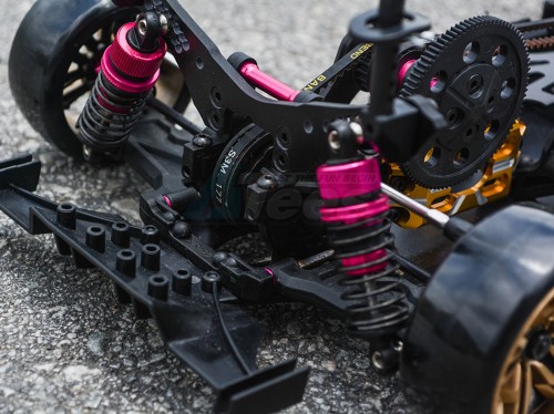 One of the great advantages of this chassis is that the battery position can be radically changed to create the drift balance you prefer. It also comes standard with 15 degree front castor and large steering angle and being rear wheel drive it is much easier get it to drift so it's great for beginners too. The chassis has been developed from the ground up with drifting in mind.
