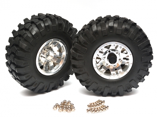 Aluminum 1.9 Bead-lock Wheel & Tire Set (1 Pair) Silver